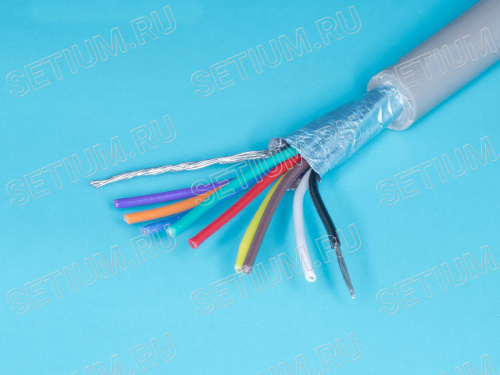 Коммуникационные сигнальные кабели предназначены для передачи управляющих сигналов в различных системах. Данный тип кабелей может иметь от 2 до 50 проводников. Проводник состоит из 7 медных луженых проволок диаметром 0,127мм. Общее сечение (калибр) проводника 28AWG.