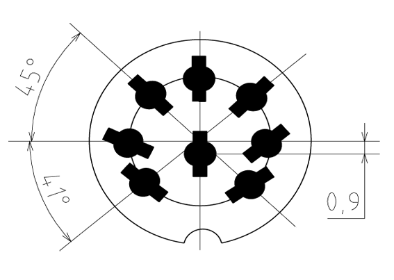 Гнездо DIN 8 контатков на кабель, 41 градус