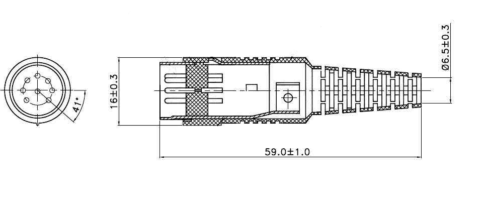 Вилка DIN 8 контактов на кабель, 41 градус