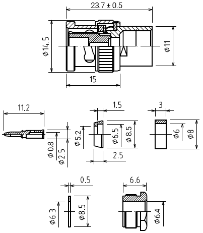 BNC разъемы – это компактные ВЧ разъемы с байонетным соединением, особенность которых в оригинальном фиксаторе с защелкой. Служат для соединения коаксиальных кабелей или подключения различного оборудования, и устанавливаются на плату, приборный блок или коаксиальный кабель. Используются в телевидении и радиосвязи с частотой сигнала не более 3 ГГц и напряжением до 500 В.